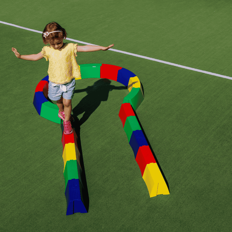 I Mattoni curvi sono progettati per incastrarsi facilmente l’uno con l’altro, permettendo di creare percorsi diversi ed esercizi mirati per lo sviluppo dell’equilibrio.
